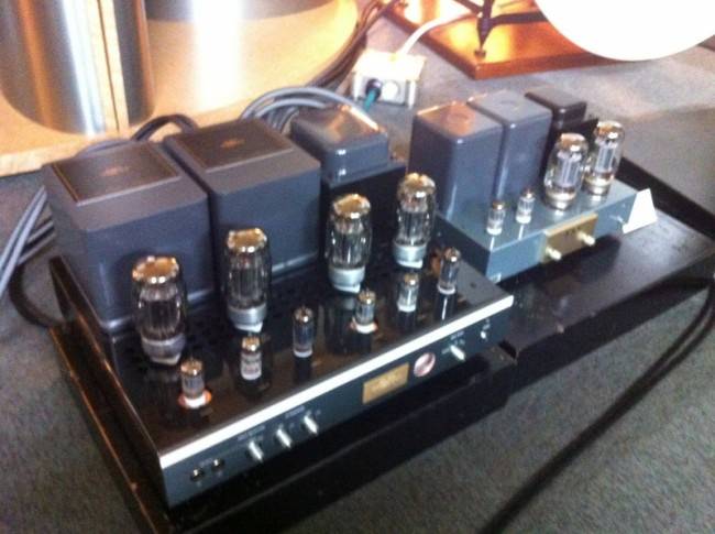 (下段スピーカーは直径1メートルくらい!)と真空管アンプ。