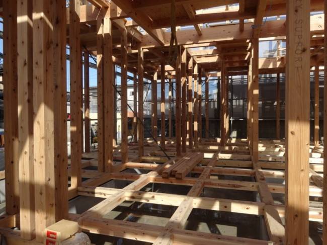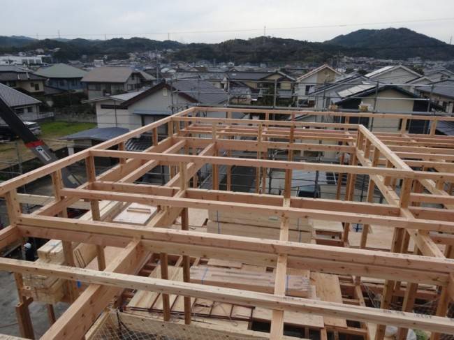 先日、T様邸が無事に上棟いたしました。ずっと天気が悪い週だったので、心配でしたが当日はすばらしい晴天!!さて、作業は順調に進行。