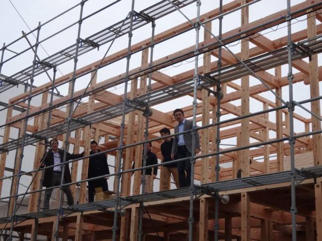 最後は、関係者一同で上棟を終えたばかりの建物を背に