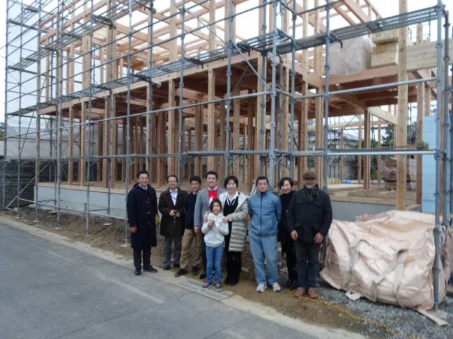 私どもは、お客様の財産を預かるものとして、しっかりと管理を行い、笑顔での引渡を行いたいと考えております。?最後は、関係者一同で上棟を終えたばかりの建物を背に記念撮影を行いました。 Tさま、上棟おめでとうございました。当社一同、完成まで気を引き締め、最高の家を建てさせていただきます。