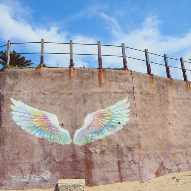 「天使の羽」の壁画があるパームビーチと呼ばれるエリア。土日はここで写真を撮る人の行列ができます。この上にあるおしゃれな商業施設「パームビーチザガーデンズ」にはかわいい雑貨屋さんや西海岸チックなレストラン、ジェラート屋さんなどが軒を連ねています。