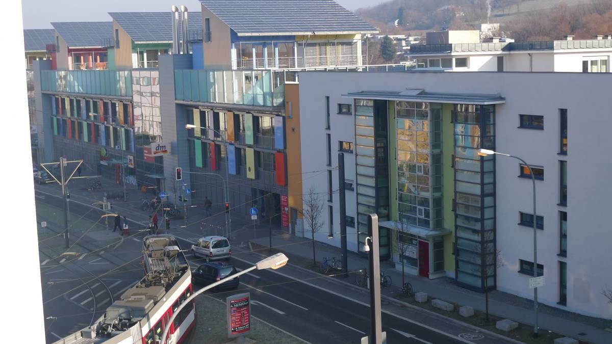 ドイツは、本当にいたるところに太陽光パネルを設置しています。ビルの上にも軒並み太陽光パネルが並んでいます。ビル自体もカラフルで街が明るいです。これは、駐車場の屋根を下から見た図。ここにも 、太陽光パネルがぎっしり。こちらは、ぎっしりどころか、屋根をはみ出して、軒兼太陽光パネルみたいになってます。 これは、街の焼却場です。街のあらゆるところにこんな場所があり、燃やした熱で沸かしたお湯を各家庭に供給しています。合理的ですね。太陽光パネルの数がエコへの意識の高さを物語っています。日本の目指すものがここにあるのかも知れません。