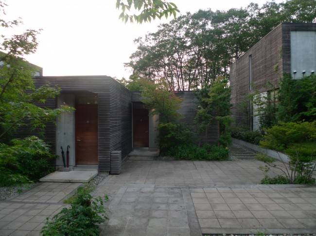 水辺の配置も面白い。はっきりとした境界を持たない、グラデーションのような水の張り方が特徴的です。夜になると、まるで、水に浮いている空間にいるような演出をします。このテラスで、いただくお酒はとてもおいしい。露天風呂は森の中にあり、開放的という言葉では到底言い尽くすことの出来ない程の開放感。体を包む空気がまるで違います。心身ともにリラックスできる空間です。こんなリラックスできる空気、仕組みを住まいにとりいれる方法はないものか永遠の課題です。次回は、究極の空間でいただく朝食のお話です。