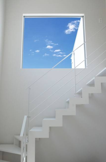 美術館の作品のように、空を大胆に美しく切り取る窓。こちらは、家のメイン、リビング上部に設置された窓です。casa biancoでは、ひとつひとつの窓の配置や、形状にも意味とこだわりを注ぎ込んでいます。別の棟になりますが、こんな感じ