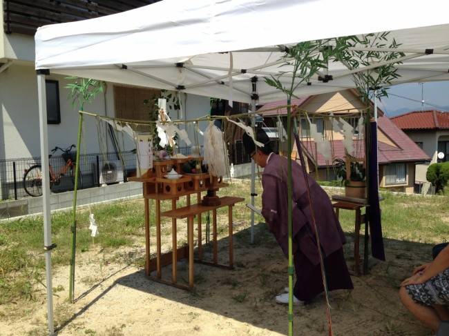 その土地の神様をお祀りして、これから始まる工事の安全と家の繁栄を