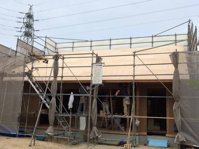野地板貼り完了です。(板金屋さんがルーフィングを貼ります)