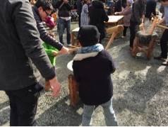 お客様やお子様たちも餅つきに参加されて会場は皆さんの笑顔や