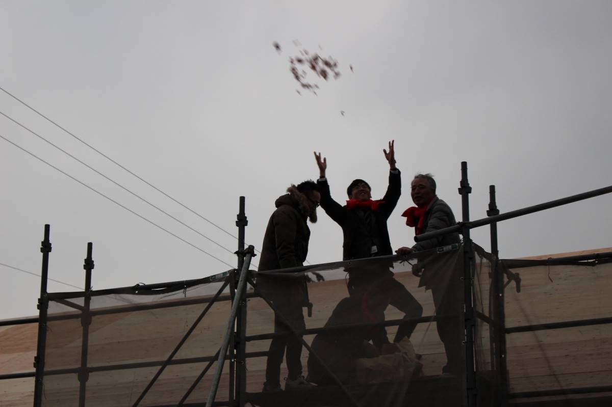 上棟式を終え、お待ちかねの餅まきです!