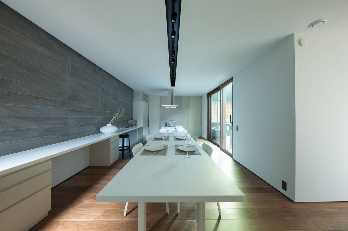 料理を作る人、食べる人が、一つのテーブルを囲めるよう、ダイニングテーブルとキッチンを一体化しました。