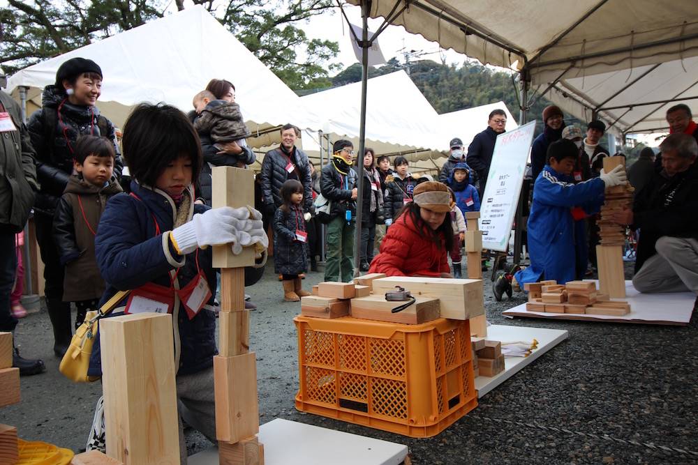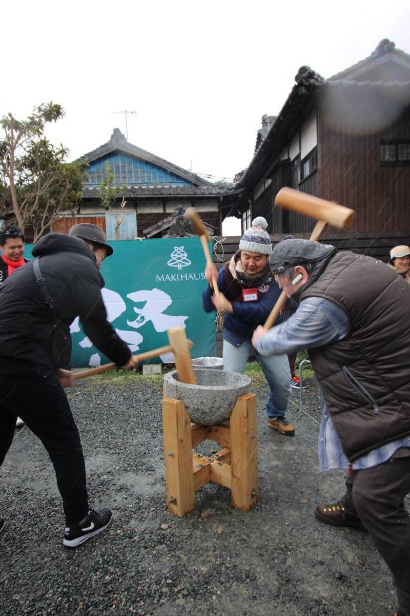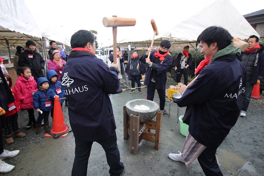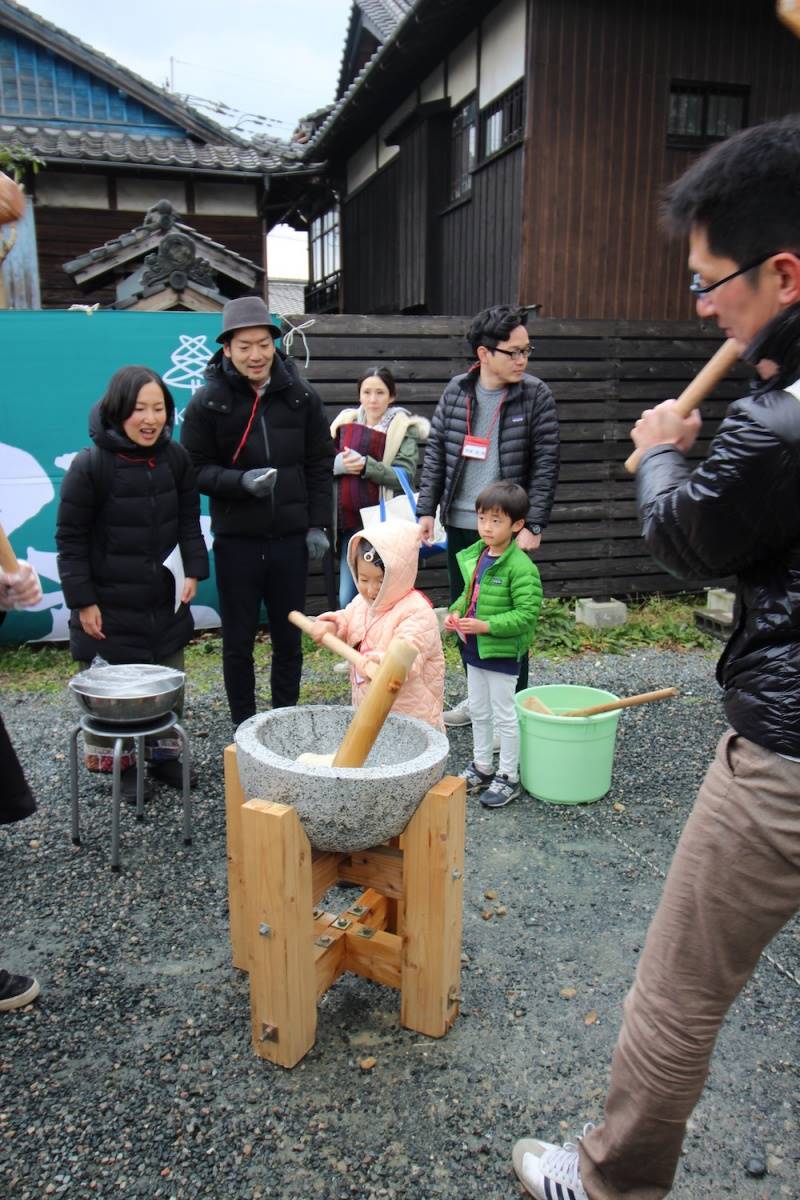杵と臼にお子さんたちも悪戦苦闘してました。