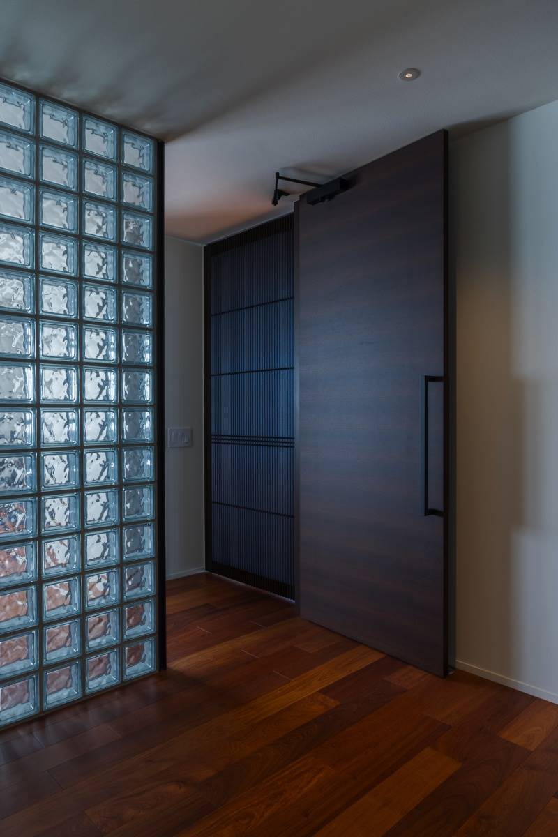 建具も家具と同じウェンジで仕上げています。そして特徴的なのがガラスブロック。昔から大変人気のある素材ですが、マンションでガラスブロックを入れるのはなかなかないですよね。リノベーションだからこそ選べる素材の一つです。