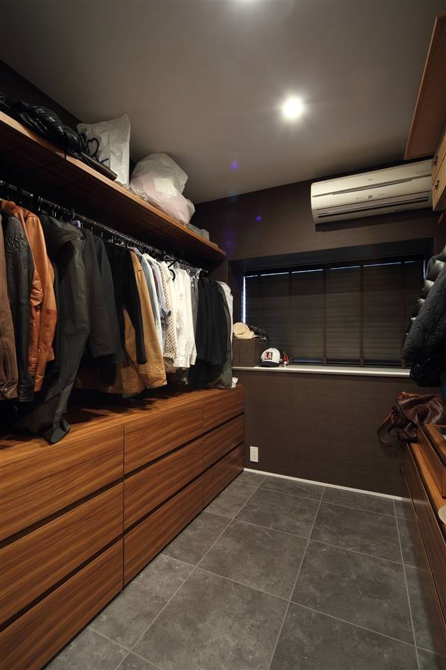 クローゼットの中にソファを置いてちょっとしたフリースペースに。なかなか贅沢な空間ですが、少しでもこのような腰掛スペースがあると、選んだ服や明日着ていく服を畳んで置いておくこともできますのでとても便利です。