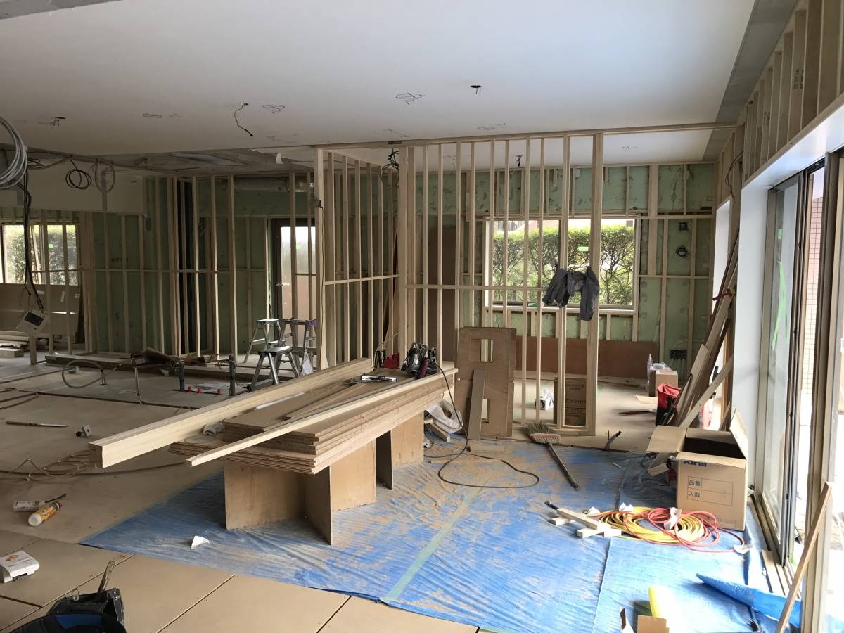 解体工事の様子をこちらでお伝えしましたが、今回はその後に続く木下地工事の様子をご紹介いたします。