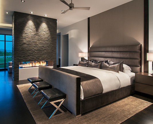 ヘッドボードはデザイン的な意味合いが強いですが、ベッドでくつろぐ時の背もたれとしての役目もします。写真のように天井に近い位置まで延ばすと、空間が広く感じられます。