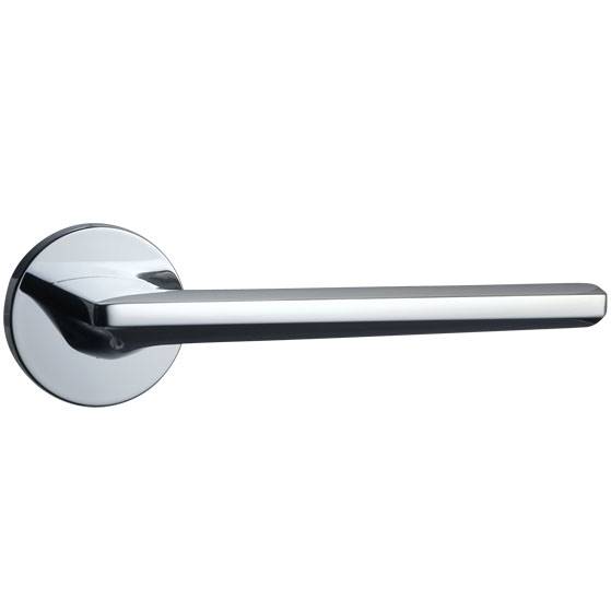 こちらはKAWAJUNのレバーハンドルです。丸座、角座のデザインが豊富です。最近は多角面でできたようなものや、曲線を帯びた有機的なデザインのものが増えています。クローム、パールブラック、サテンニッケルの基本色に加え、ダークアンバー(写真一番上)という色もありますので、部屋の雰囲気に合う色が見つかると思います。