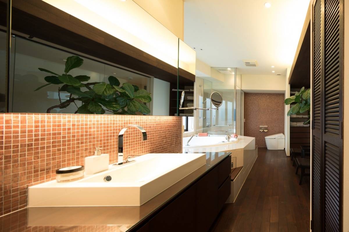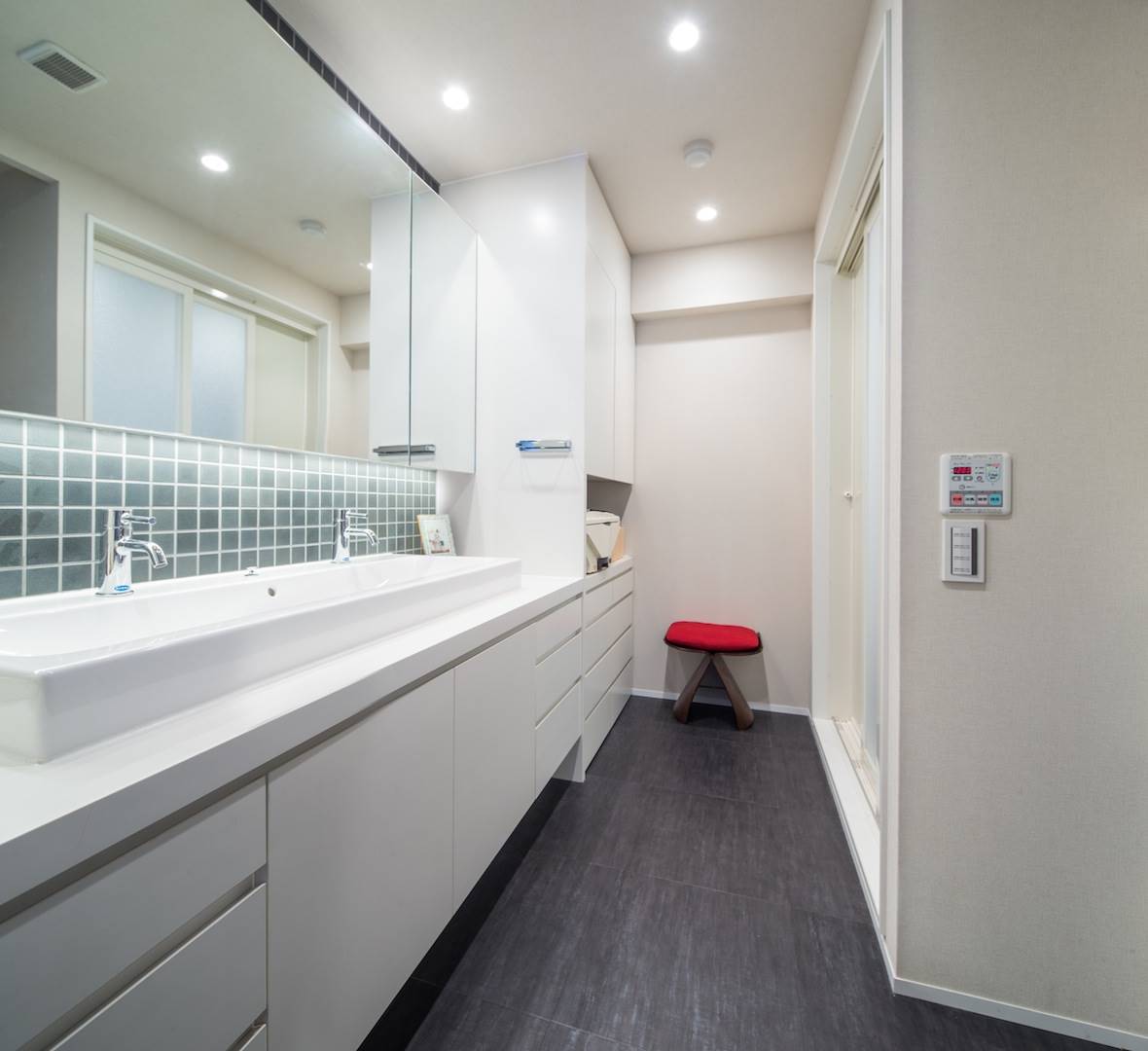 「ホテルのような洗面室」をイメージして思い浮かぶのがこの2ボウルタイプの洗面室だと思います。家族が多いご家庭では、朝の洗面室の渋滞は毎日のストレスです。広々とした洗面室で日々の身支度を快適にしたいものです。