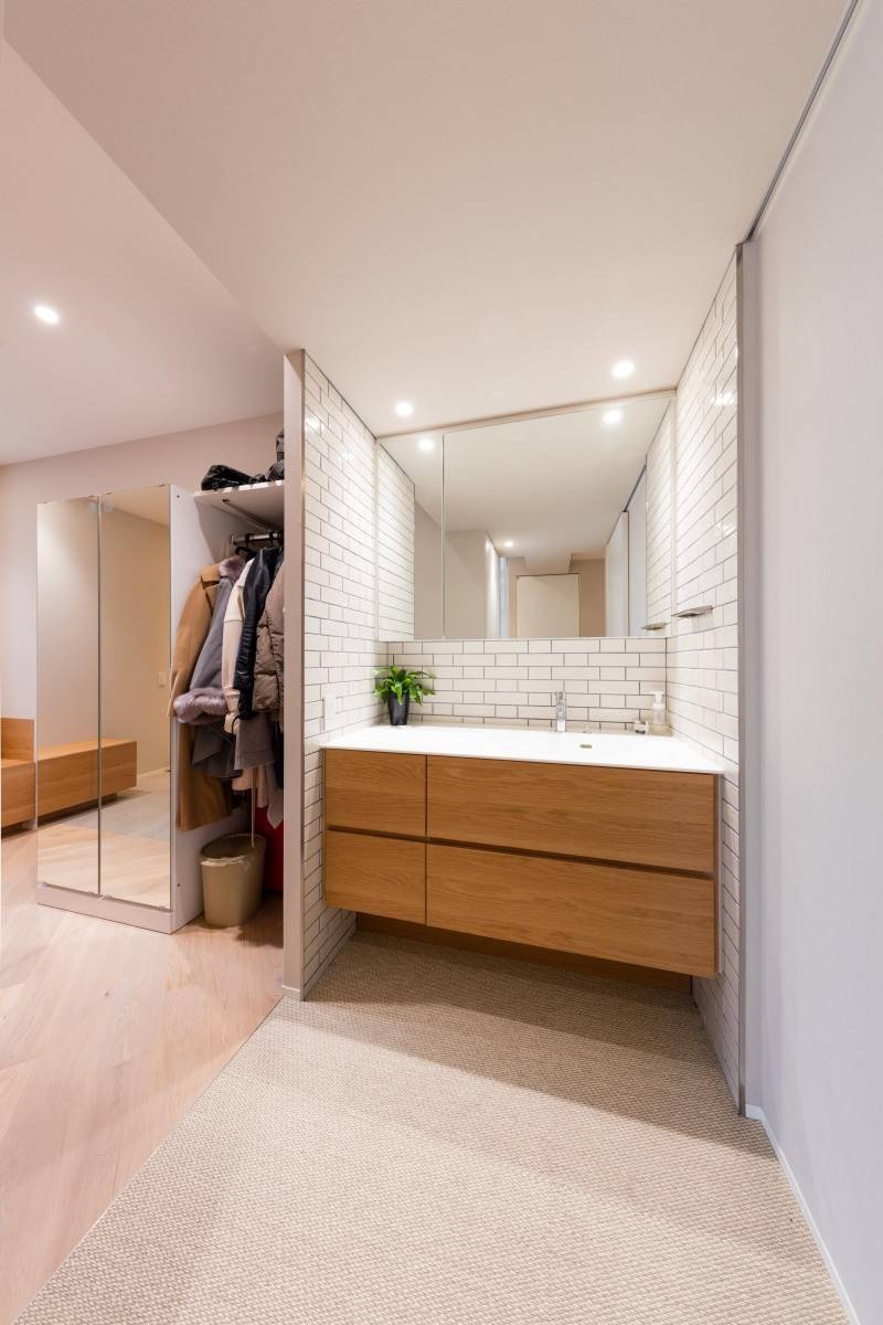 こちらはクローゼットと繋がっているオープンなタイプの洗面室です。リノベーションは自由設計ですので、洗面室のあり方も思いのまま。クローゼットやトイレと?がっていたり、玄関から直接アクセスできたり、住む人にとって一番使いやすい位置に自由に洗面室を配置できます。