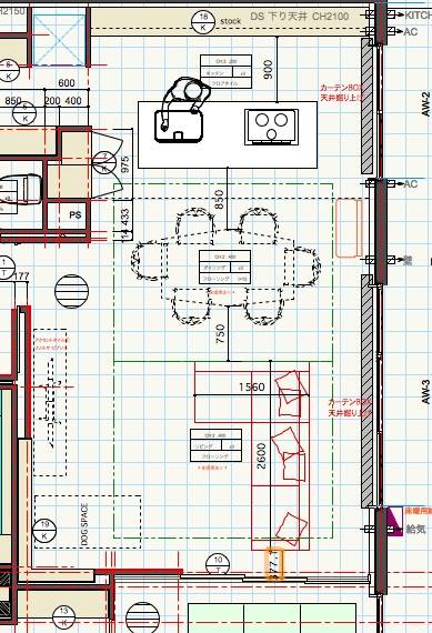 特にソファはサイズや形が様々ですので、綿密に配置を考える必要があります。現在進行中のプロジェクトにおきまして、オーナー様から新しくソファをご購入されるとのご相談がありました。ショールームにご同行させていただき、実物を確認した上で、このように図面に配置を落とし込みました。