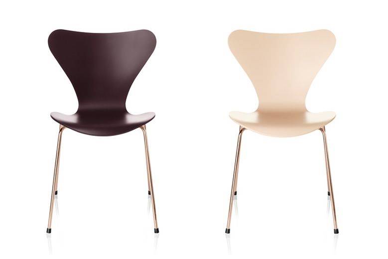 先日お引き渡しをした薬院のマンションリノベーションでオーナー様が素敵なセブンチェアを入れられていました。2017年の限定モデルで、右側のピンクベージュの色のセブンチェアでした。