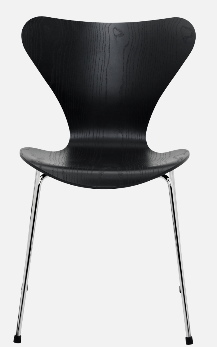 デンマークが生んだ偉大な建築家アルネ・ヤコブセンは、プライウッド(芯材に薄くスライスした木材を積み重ねて接着した合板)に加工を施し曲面に成形加工した「成形合板」により、世界で初めて椅子の背と座面が一体となって成形された「アントチェア」を1952年に発表しました。その3年後の1955年、アントチェアに比べ背の部分が大きく広がり、より耐久性に優れ、洗練されたフォルムを持つ「セブンチェア」が発表され、その後現在までデザインの歴史に残る名作として世界中で愛されています。