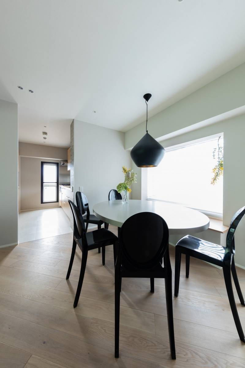 T邸のリノベーションでもBeat Lightの大きなシェードのタイプを納品しました。1灯だけでも十分存在感があり、非常にインパクトのあるペンダントです。直径が52㎝もあるので写真で見るよりも実物は大きいですが、ダイニングを明るく照らしてくれます。黒+真鍮の組み合わせが男性っぽくてかっこいいですね。