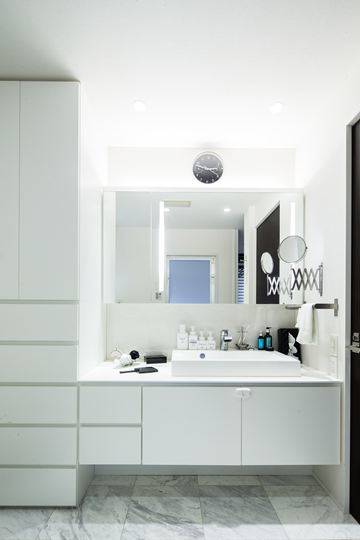 タオル類や化粧品、ストック類、清掃用品など、洗面室はキッチンに次いで細々とした物が多くて散らかりやすい場所です。毎日家族全員が使う場所ですからなおさら汚れて散らかりがちですが、リノベーションで生まれ変わった洗面室は毎日美しい状態を保てます。その秘密を教えます。