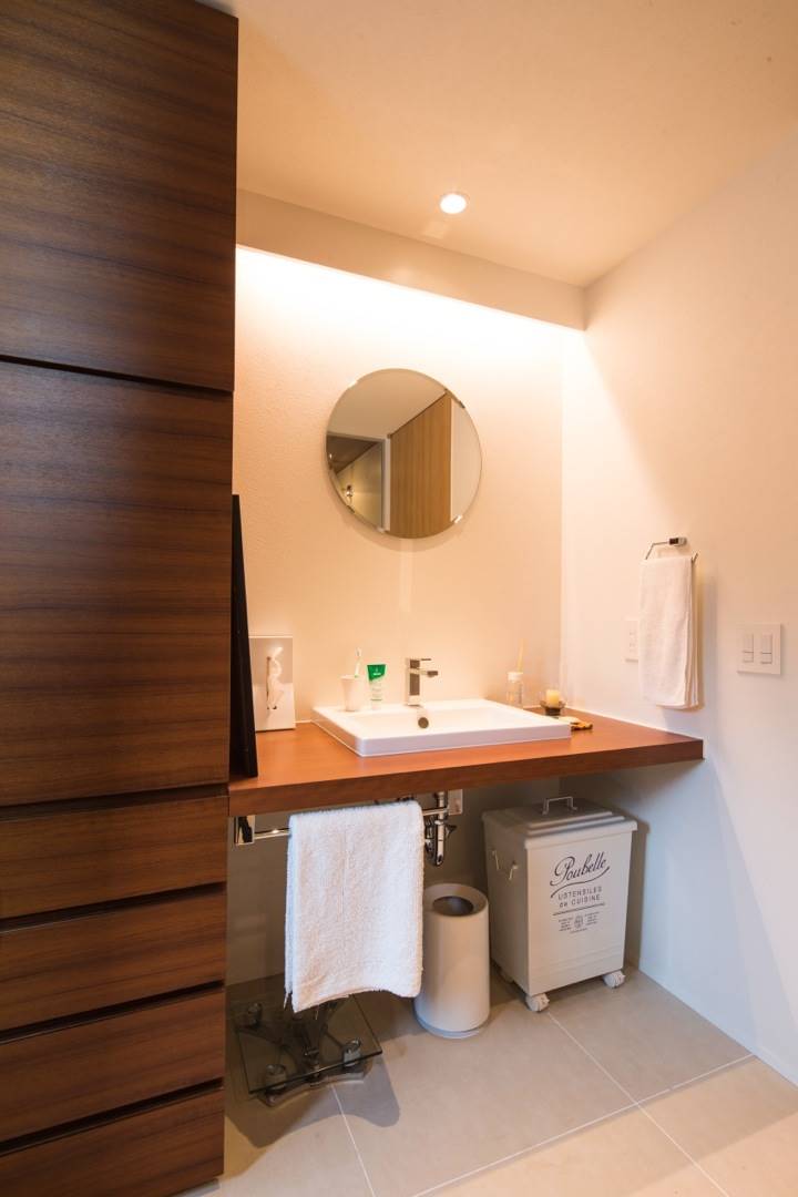 洗面室もキッチンと同じく、どこに何を収納するかが決まっていれば、自ずと散らかりません。洗濯したあと、掃除をしたあとにそれぞれの物が帰るところがあれば、自然と片付いていくものです。洗面化粧台の上に並べるものは最小限にし、あとは見えない収納の中に居場所を作ってあげましょう。