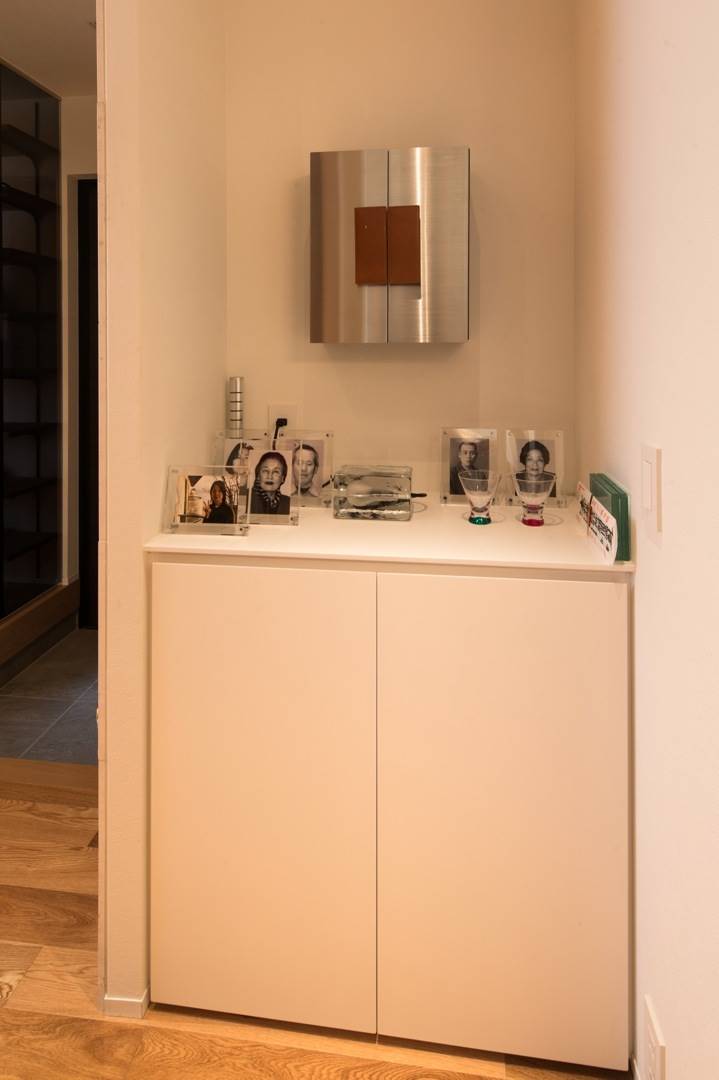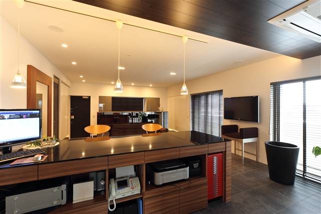 家電類はなるべく外に出したくないもの。電話、FAX、プリンターなど、家の中の家電も寸法に合わせて造ったリビング収納に仕舞っておけば大丈夫。目立たず埃を被る心配もありません。
