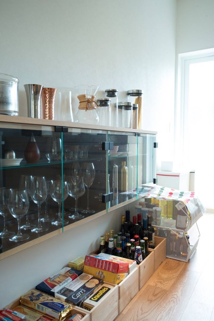 キッチンの食器棚に収まりきれない食器や雑貨類を、まるでディスプレイするようにリビングに収納します。
