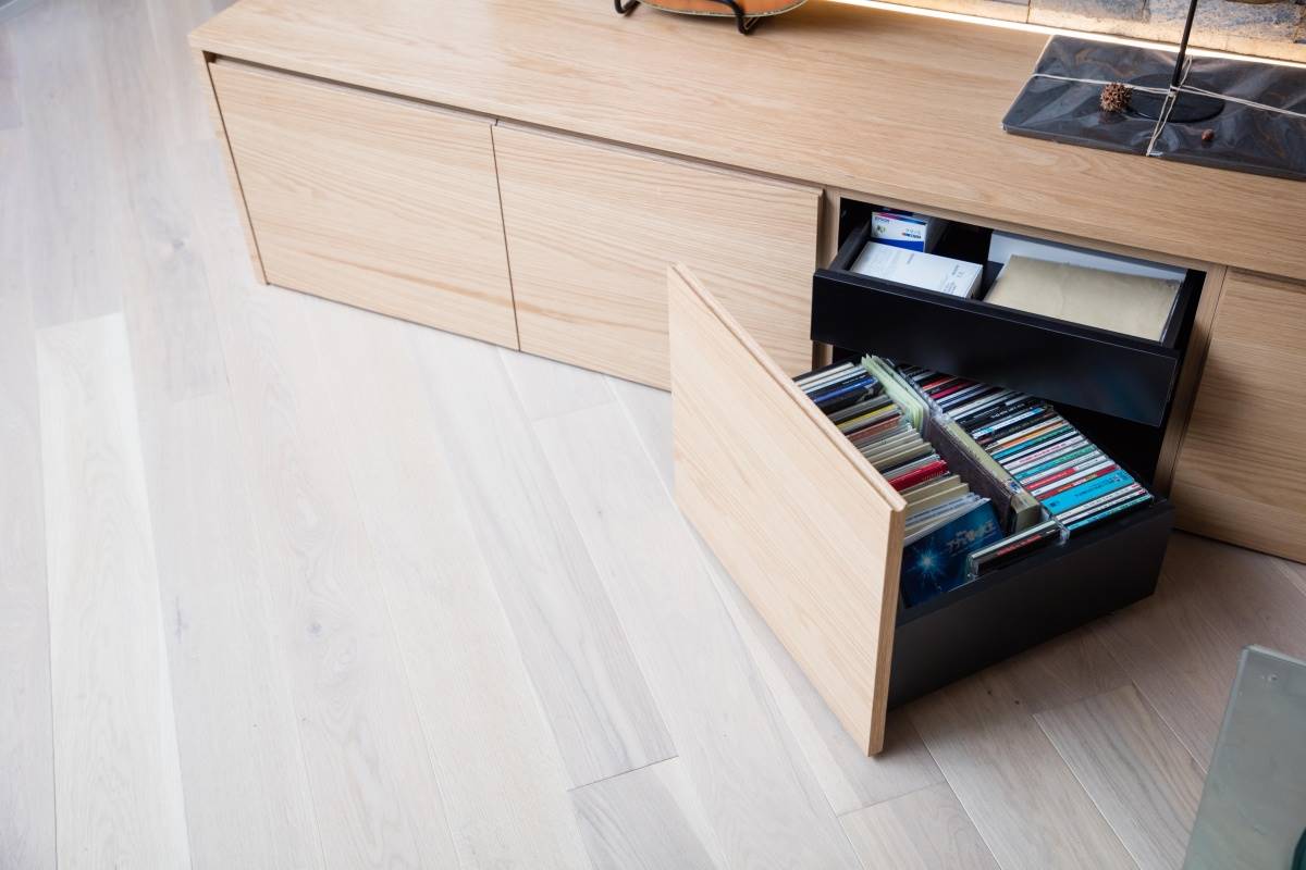 レコードやCD、雑誌の数は人によって様々ですが、オリジナルでそれらの収納用家具を造れば、お持ちの数や大きさに合わせてジャストサイズで造ることができます。綺麗に収納して美しく。洋書やオシャレな雑誌は飾るように収納してもいいですね。