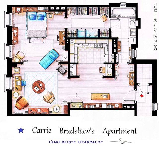 こちらはアメリカの大人気ドラマ“Sex and the City”の主人公のアパート。ファッション大好きな主人公がクローゼットで服や靴を選ぶシーンがいつも印象的でしたが、欧米の住宅ではこのように寝室とバスルームの間にクローゼットがある、というような通り抜け可能な「ウォークスルークローゼット」が当たり前です。