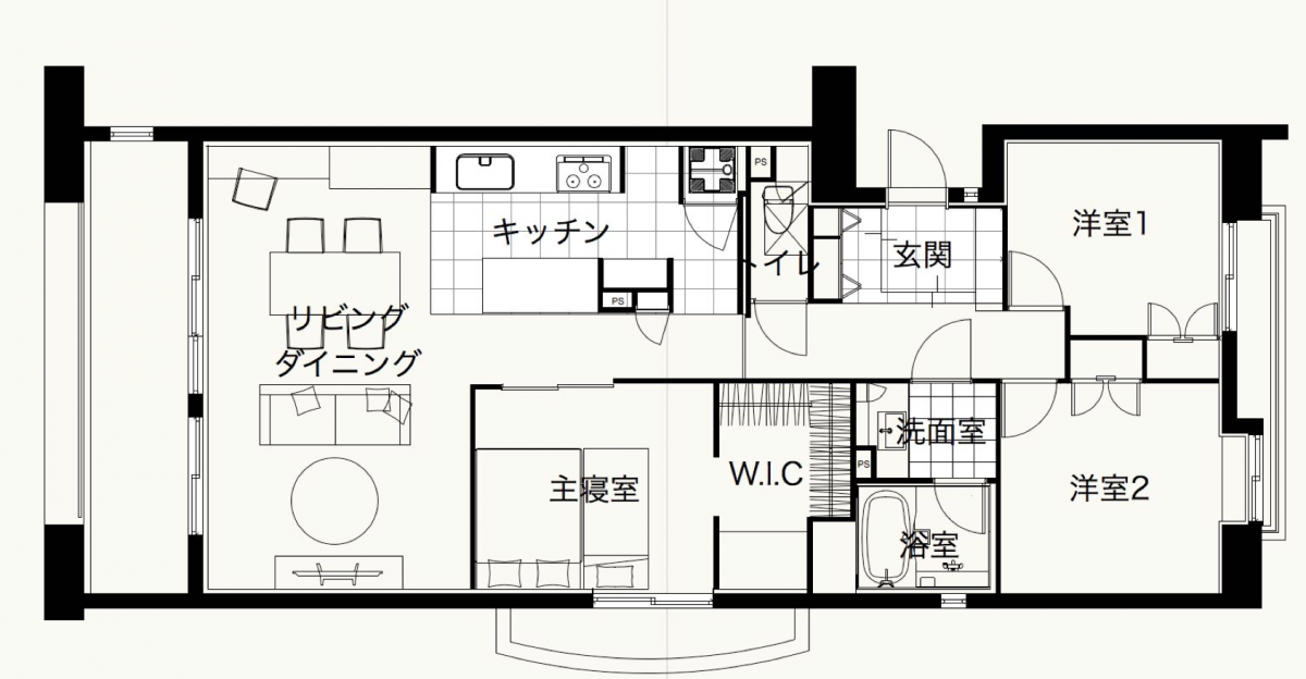 主寝室もLDKに隣接しているので、自分の時間を持ちつつも家族のつながりを保つことができます。