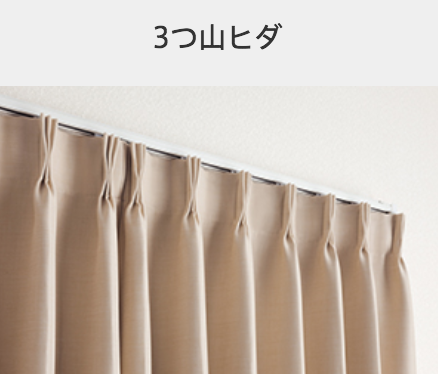 吊り元のヒダのつまみ方(山の数)でカーテンの印象は大きく異なります。山が多いほど生地をたくさん使うのでボリューム感のあるラグジュアリーな印象のカーテンになります。