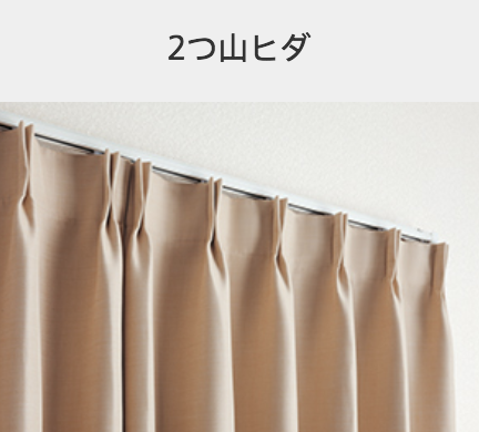 一般的に規格サイズ(既製品)やイージーオーダー仕様に多く使われます。3つ山カーテンに比べ、ウェーブがゆるやかですっきりとした印象を与えます。シンプルでモダンな空間におすすめします。横幅に対して生地を1.5倍使うのが標準的です。