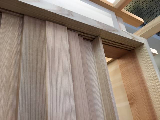 生産性や耐震性等のさまざまな課題があるとのことであくまでもプロトタイプの展示でしたが、建具のデザインの可能性を見ることができました。職人さんの技術力とそれをデザインに活かす力に圧倒されました。