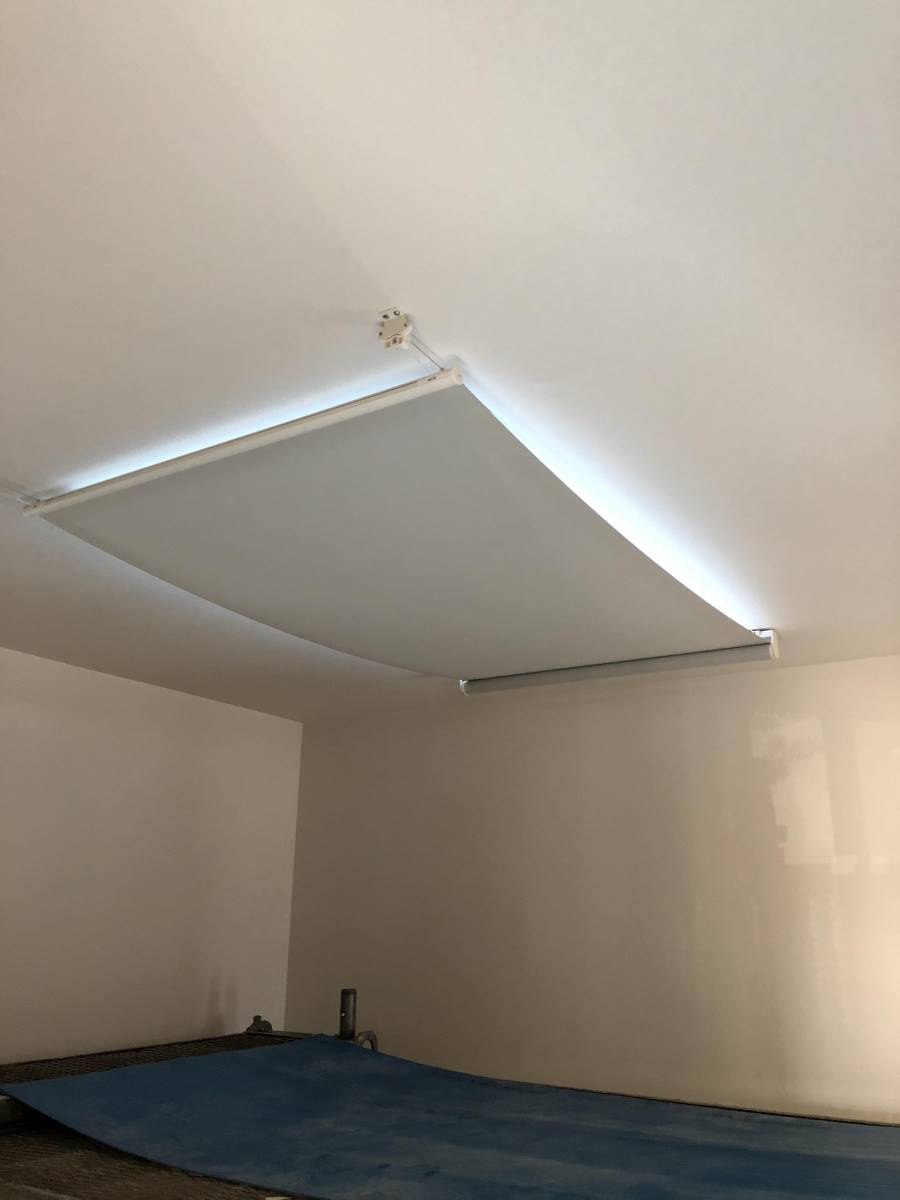 こちらがロールスクリーンを引いた状態です。電動式、手動式とありますが、今回は手動式です。