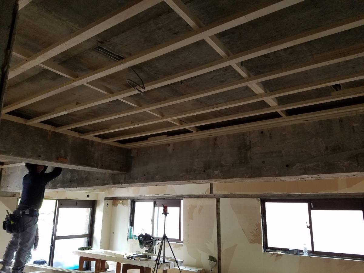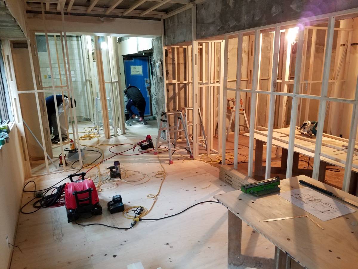 先日よりスタートした西新のマンションリノベーションプロジェクト。スケルトンになった後は早速造作工事がスタートです。