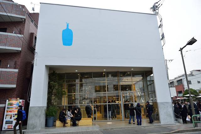 こちらがブルーボトルコーヒー清澄白河店。元々工場だったところをリノベーションして、焙煎コーナーも備えた日本初のブルーボトルコーヒーの店舗となりました。この有名なお店を手掛けられた方にお話を聞けるなんて、大変貴重な機会となりました。