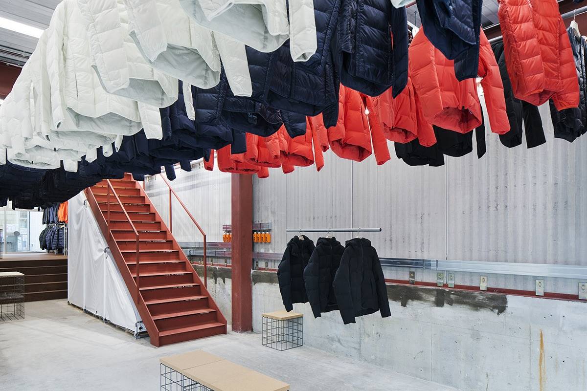 服を試着する時にサイズ違いの服をお店の方がストックルームに取りに行く間にテンションが下がってしまう。それを阻止するために、間髪入れずに服を試着できる空間デザインを考えた結果、このデザインが生まれたそう。