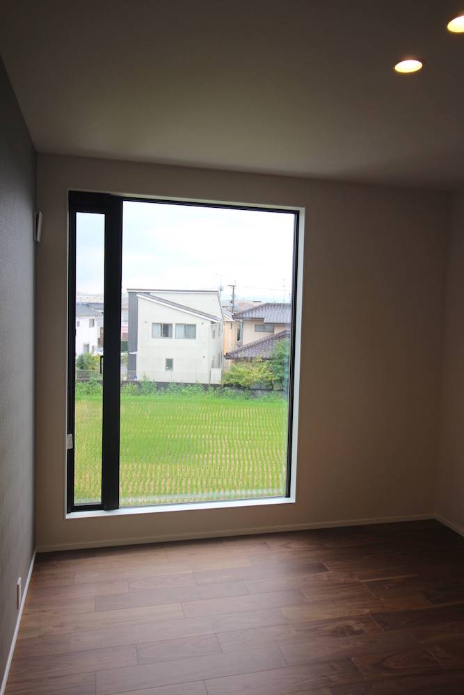 上の寝室でも同様の窓があり、緑一面の田んぼを見渡すことができます。