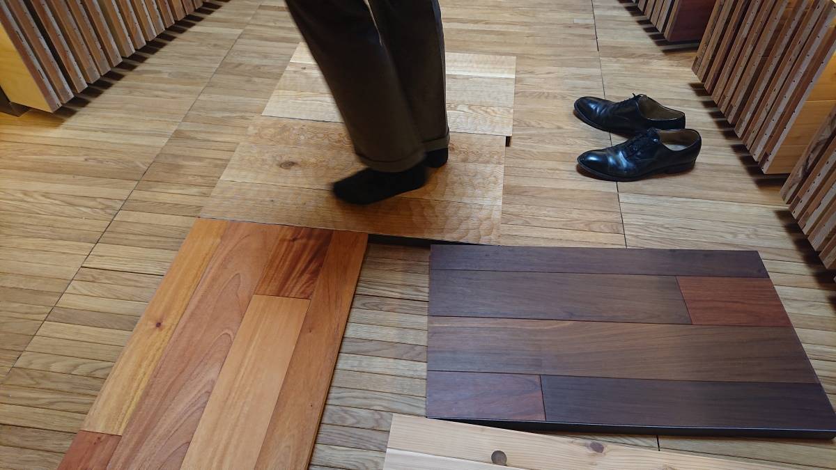 ショールームでは、100枚を超える種類のフローリングやサンプルを実際に見て・触れて・踏んで体感することができます。