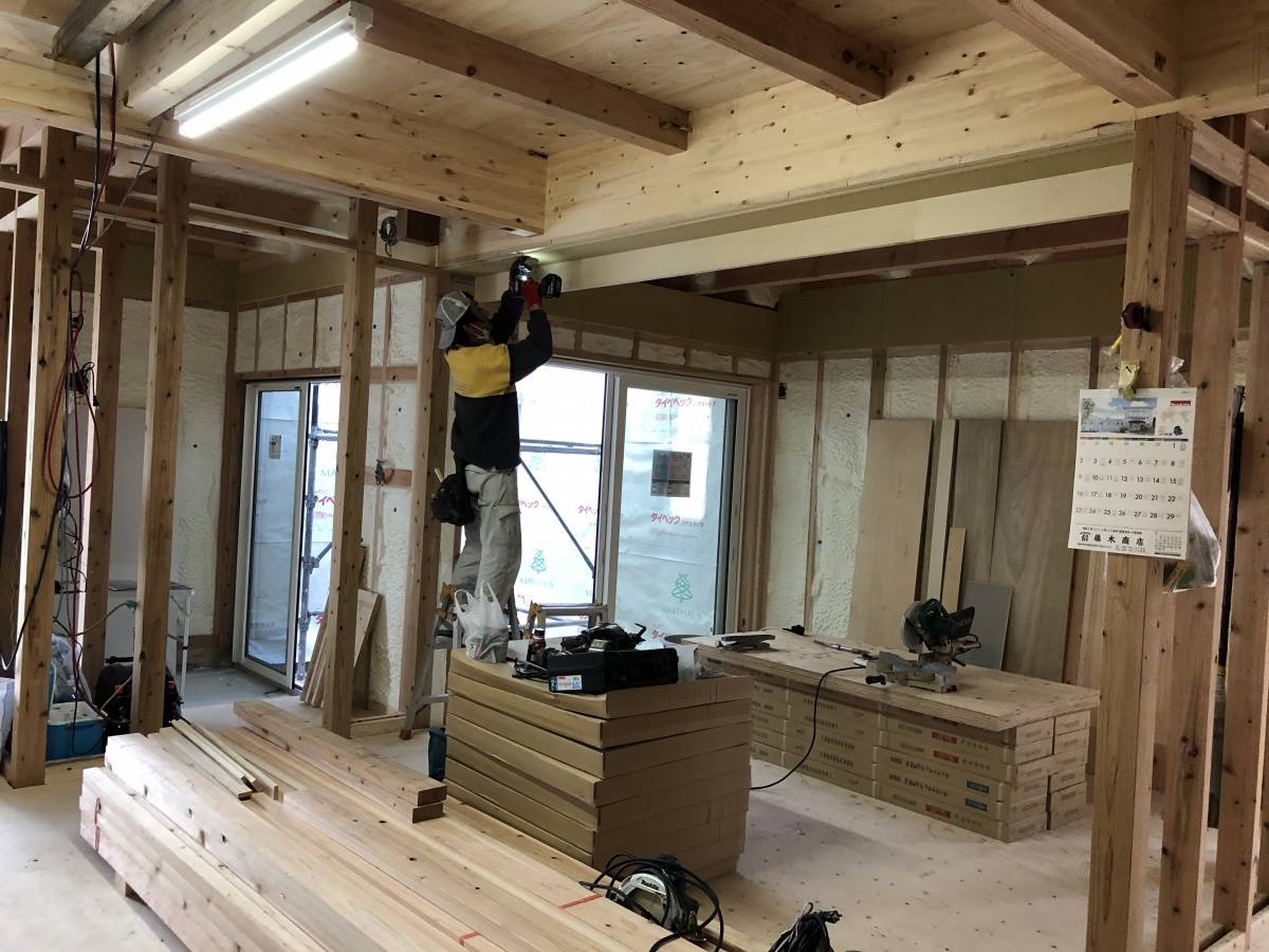 完成見学会では見ることのできない、職人さんの仕事の様子を見ることができるのも、現場見学会ならではです。