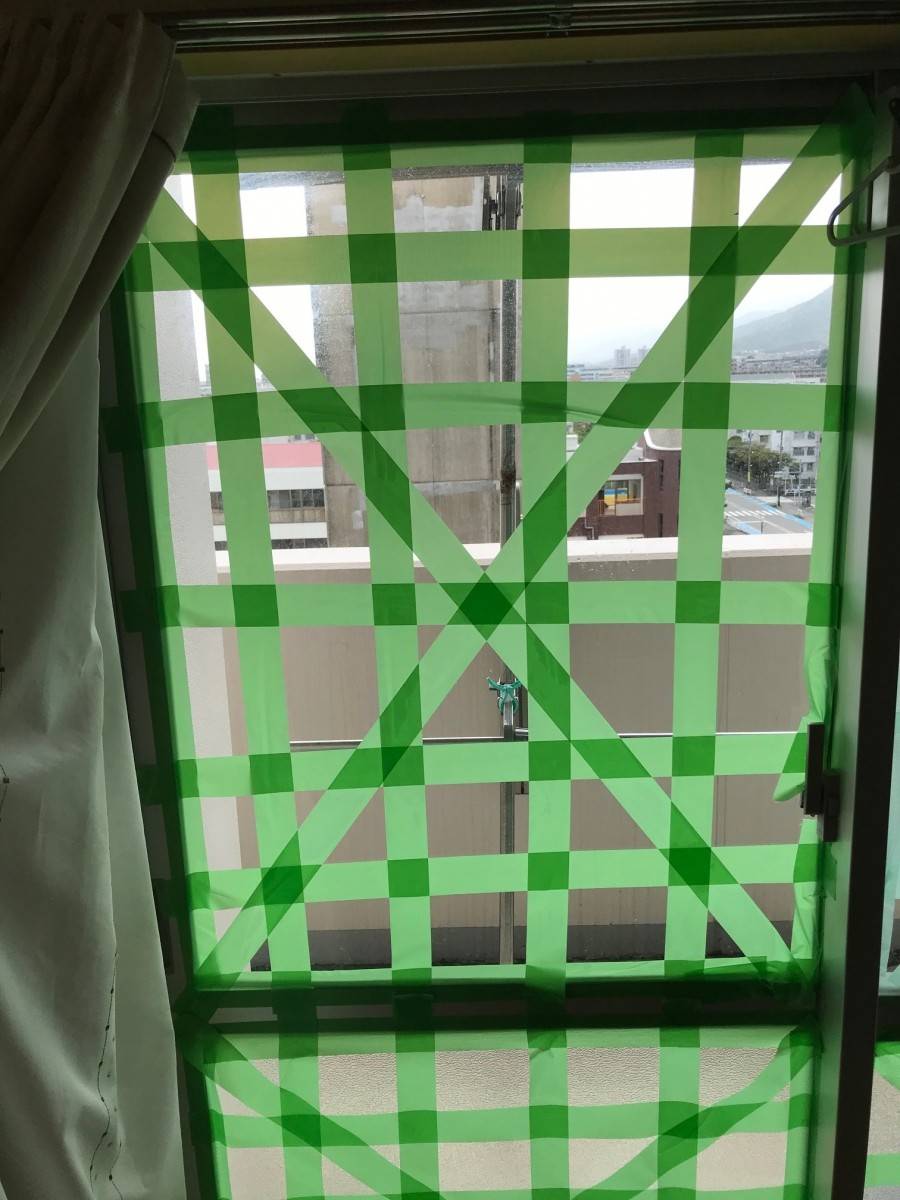 ・養生テープ、ガムテープでガラス窓を直接補強する