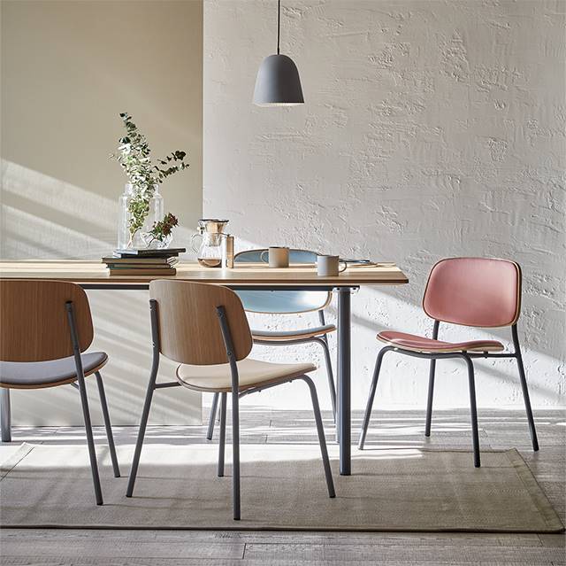 北欧テイストのこちらの家具。脚の色にはスチールの他にマットのブラックとグレーの新色も加わり、伝統を守りつつも新たなトレンドも取り入れて時代に適応しています。