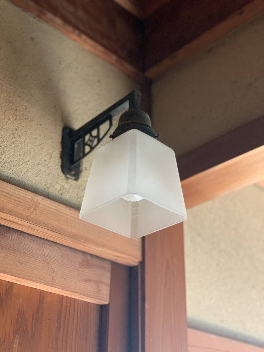 廊下と階段のブラケット。鉄とガラスが大変ノスタルジックな雰囲気を醸し出しています。今造ろうと思っても出せない雰囲気ですね。
