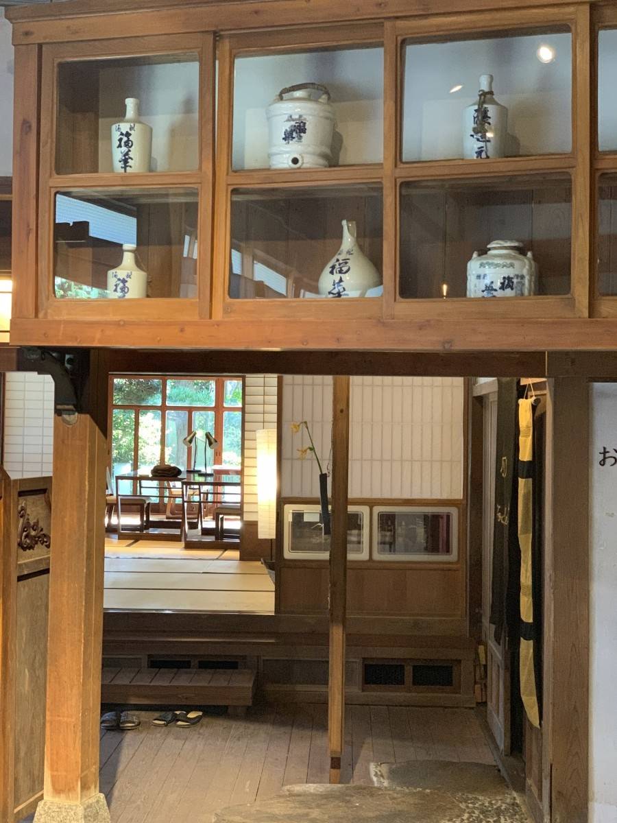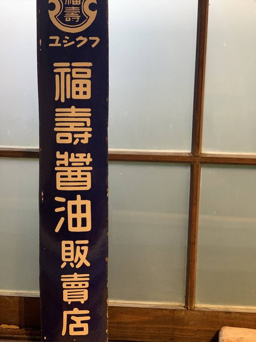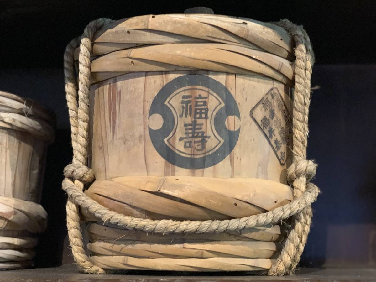 何気なく棚に並べられている瓶や樽。よく見ると、伊都安蔵里の前身である「福寿醤油」のマークがあります。瓶もどうやら福寿醤油の頃に使われていたもののようです。こんなに貴重な小物が飾られていたなんて!
