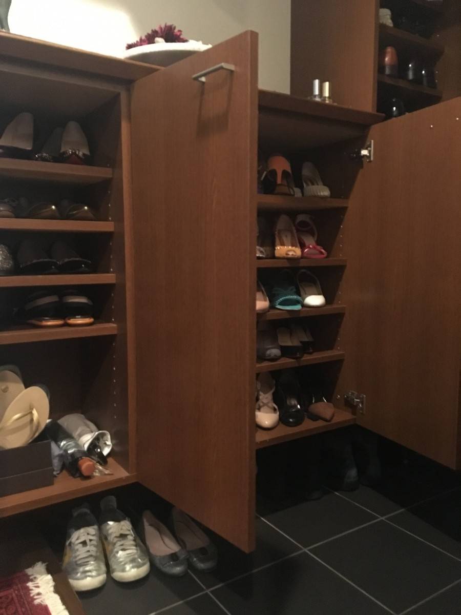 まずは玄関収納。ご家族全員でだいたい何足くらい靴をお持ちでいらっしゃるか、数を数えていたら時間が足りないので写真を撮っていきます。ブーツなどは収納スペースを考えなければいけませんので、どういう種類の靴をお持ちかを考えながら撮影します。