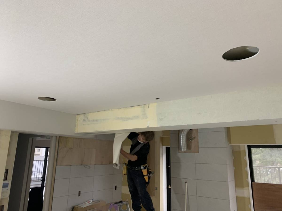 みるみるうちにクロスが貼られ、内装が仕上がっていきます。内装仕上げ工事のあとはいよいよ造作家具やキッチンが取り付けられ、工事の最終段階へと突入します。