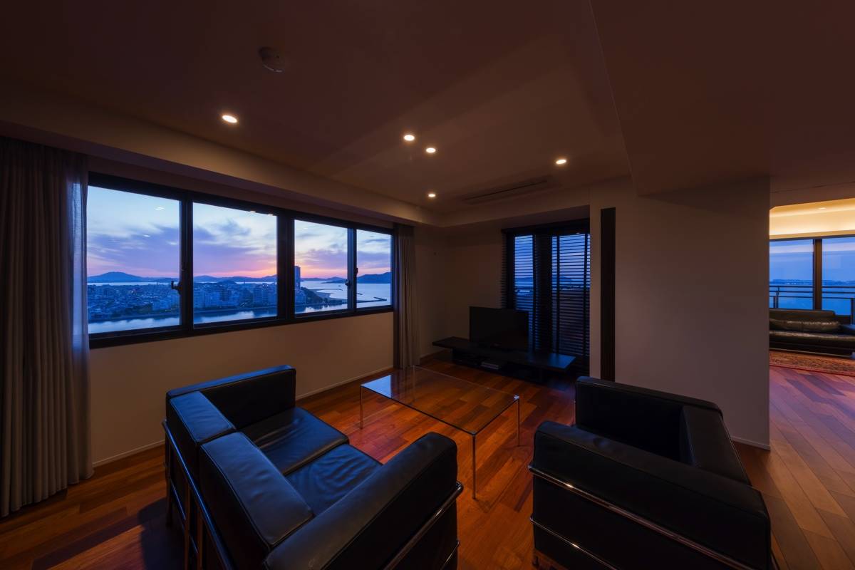 今回のリノベーションは福岡市の人気の海沿いエリアのマンション。リビングダイニングいっぱいには海沿いの素晴らしい景色が広がり、リノベーションで間取りを変えたことでさらに景色が良く見えるようになりました。