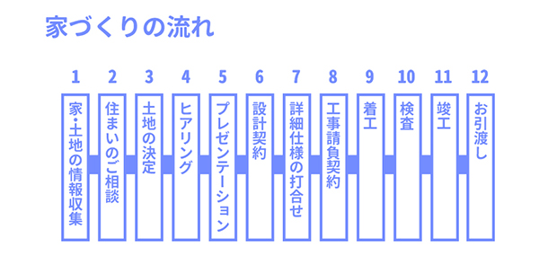家づくりには、お引渡しまでにいくつかの工程がございます。
